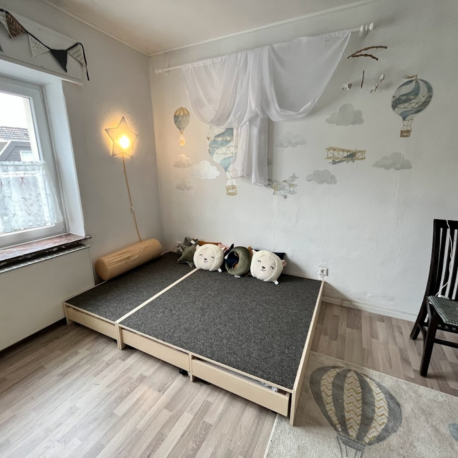 Die Räume unserer Kindertagespflege bieten den Kindern viel Platz zum Toben, Spielen und Schlafen. Es stehen 4 liebevoll eingerichtete Räume für vielfältige Entdeckungen bereit. Die Kindertagespflege findet in angemieteten Räumen statt. Die Einrichtung ist modern und mit der kindgerechten Ausstattung fühlen wir uns hier jeden Tag wohl. Sicherheit ist beim Spielen wichtig und so sind die Räume mit verschiedenen Features ausgestattet, die unbekümmertes Spielen ermöglichen.
